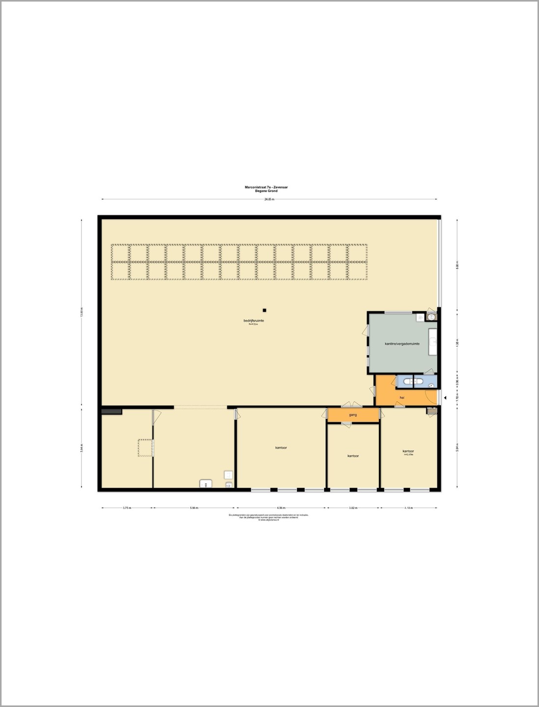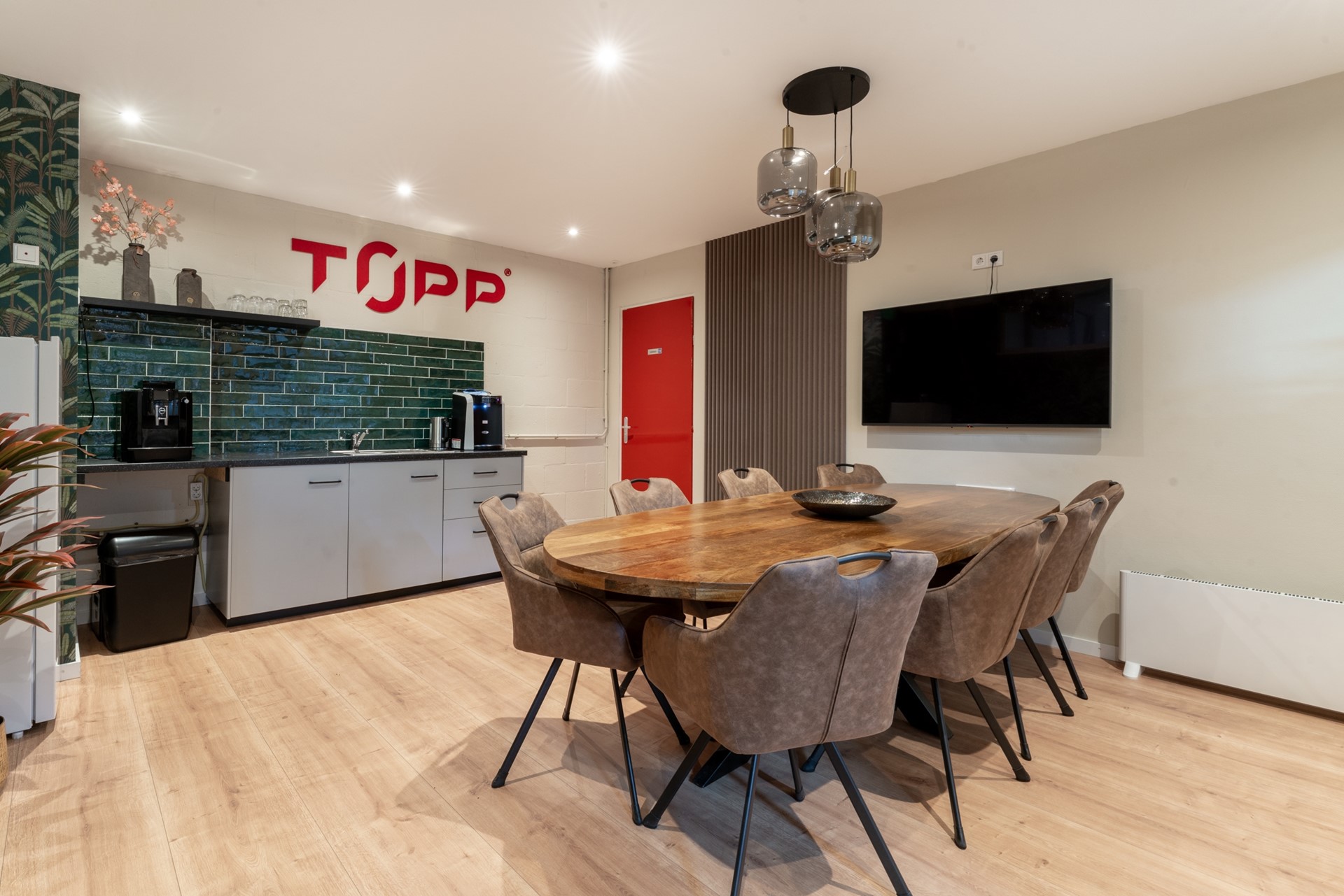 Entree, hal met toilet, kantoorruimte 1 (25 m²) met meterkast, kantoorruimte 2 (19 m²), grote multifunctionele kantoorruimte (39 m²) met pantry voorzien van vaatwasser, kantine/vergaderruimte 22 m² met pantry en toilet, multifunctionele bedrijfshal (totaal 368 m²) met lichtstraat en overheaddeur, magazijn/opslagruimte met wasmachine aansluiting en cv-opstelling.
