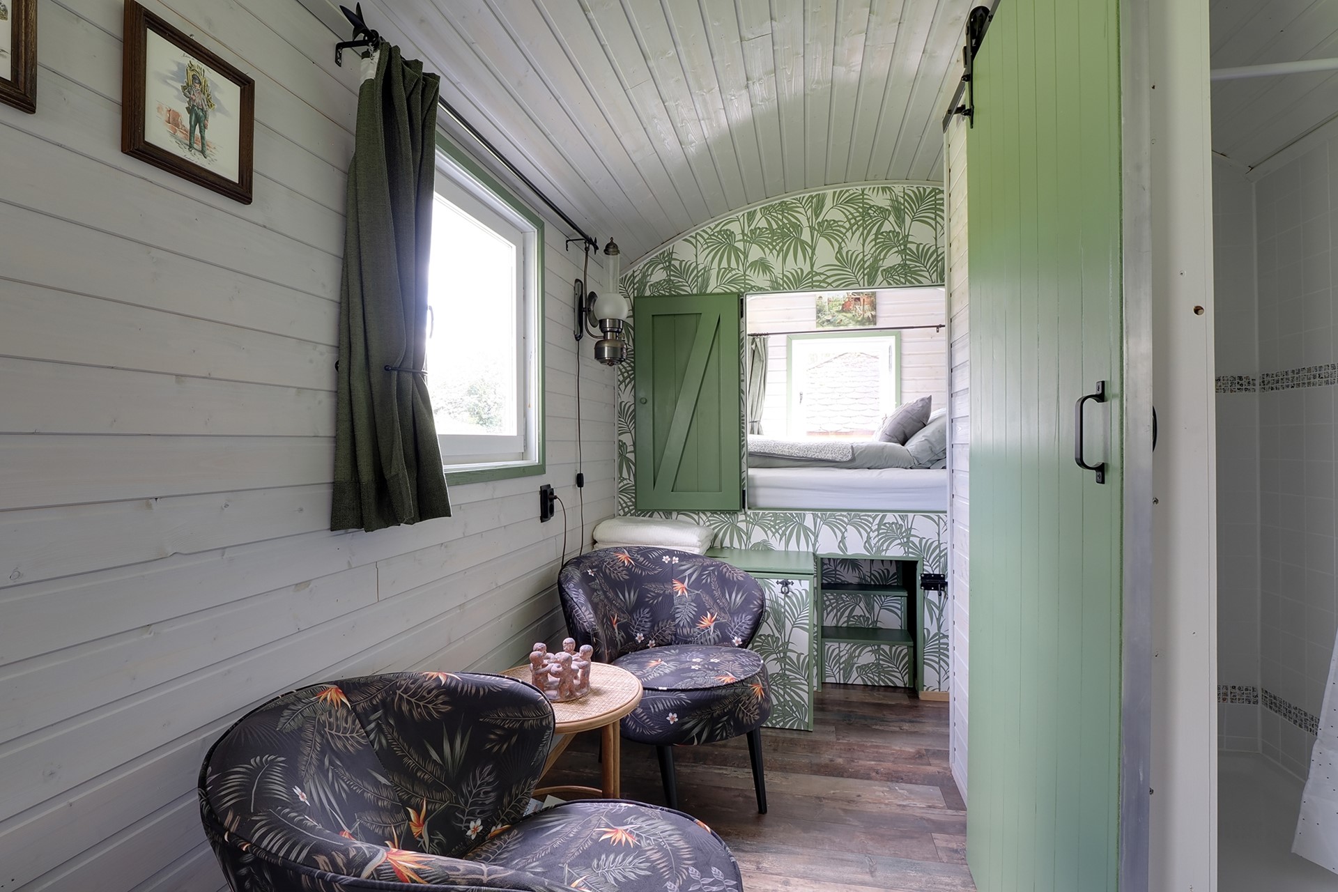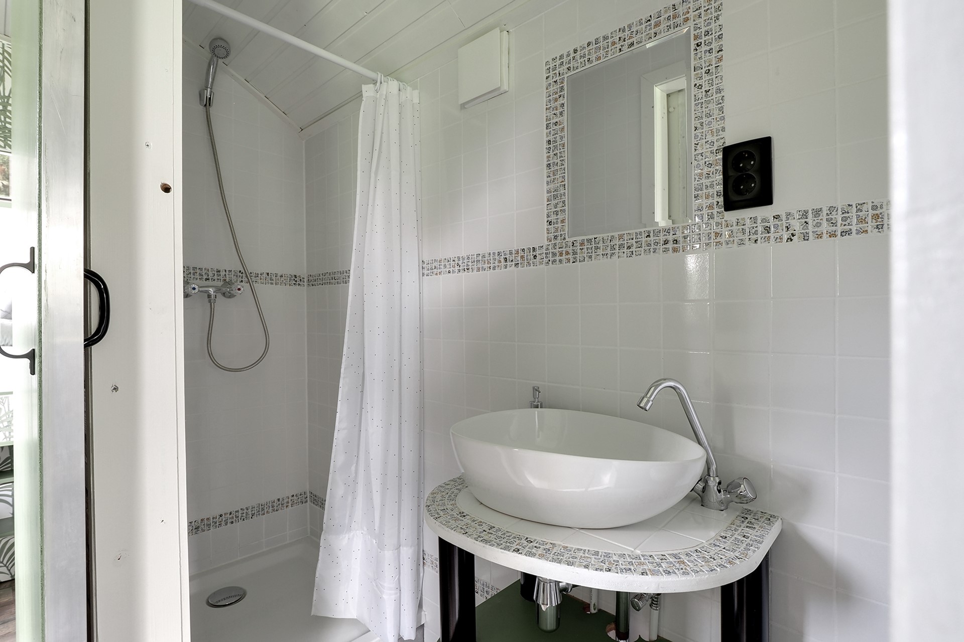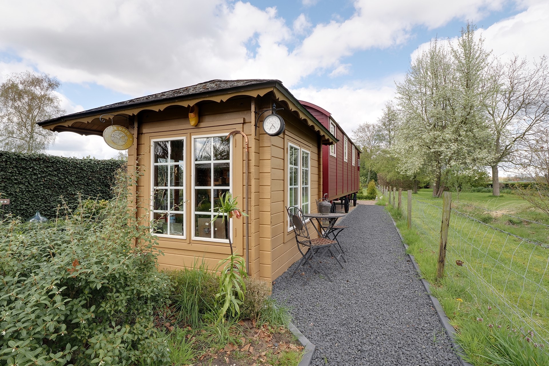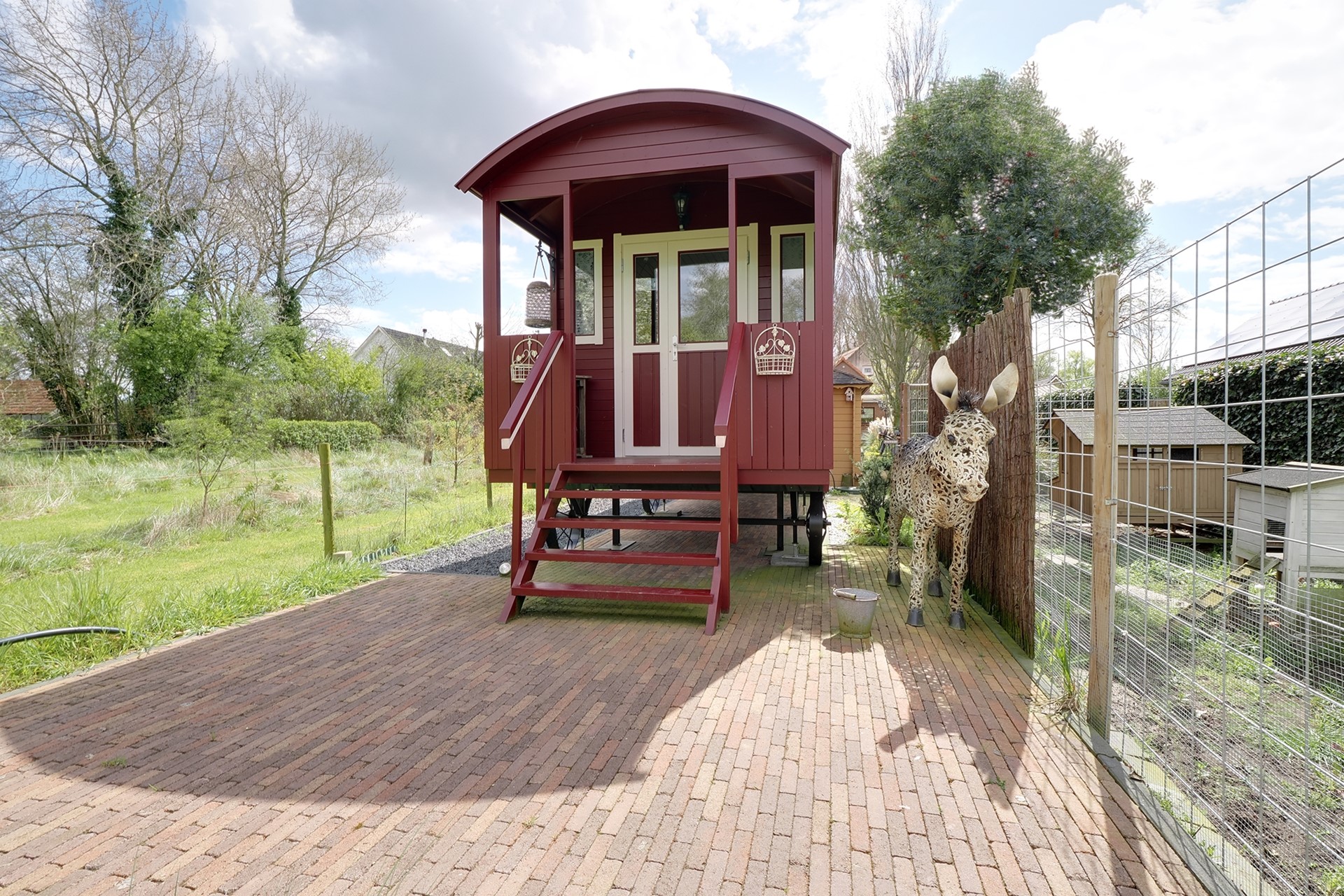 TUIN: De royale achtertuin is maar liefst ca. 75 meter diep en beschikt over een aluminium overkapping, een broeikas, houten blokhut met elektra en een volledig zelfvoorzienende ‘pipowagen’, welke als bed & breakfast in gebruik is geweest. De pipowagen wordt verwarmd middels airconditioning en er is een elektrische boiler voor warmwater, garage voorzien van elektrische roldeur