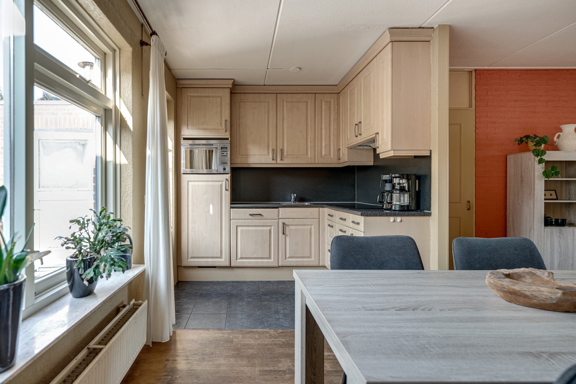 BEGANE GROND: Entree, hal met meterkast en trapopgang, toilet met fontein, woonkamer met trapkast, open keuken voorzien van inbouwkeuken met afzuigkap, keramische kookplaat, combi-oven, koelkast en vaatwasser, deur naar tuin.