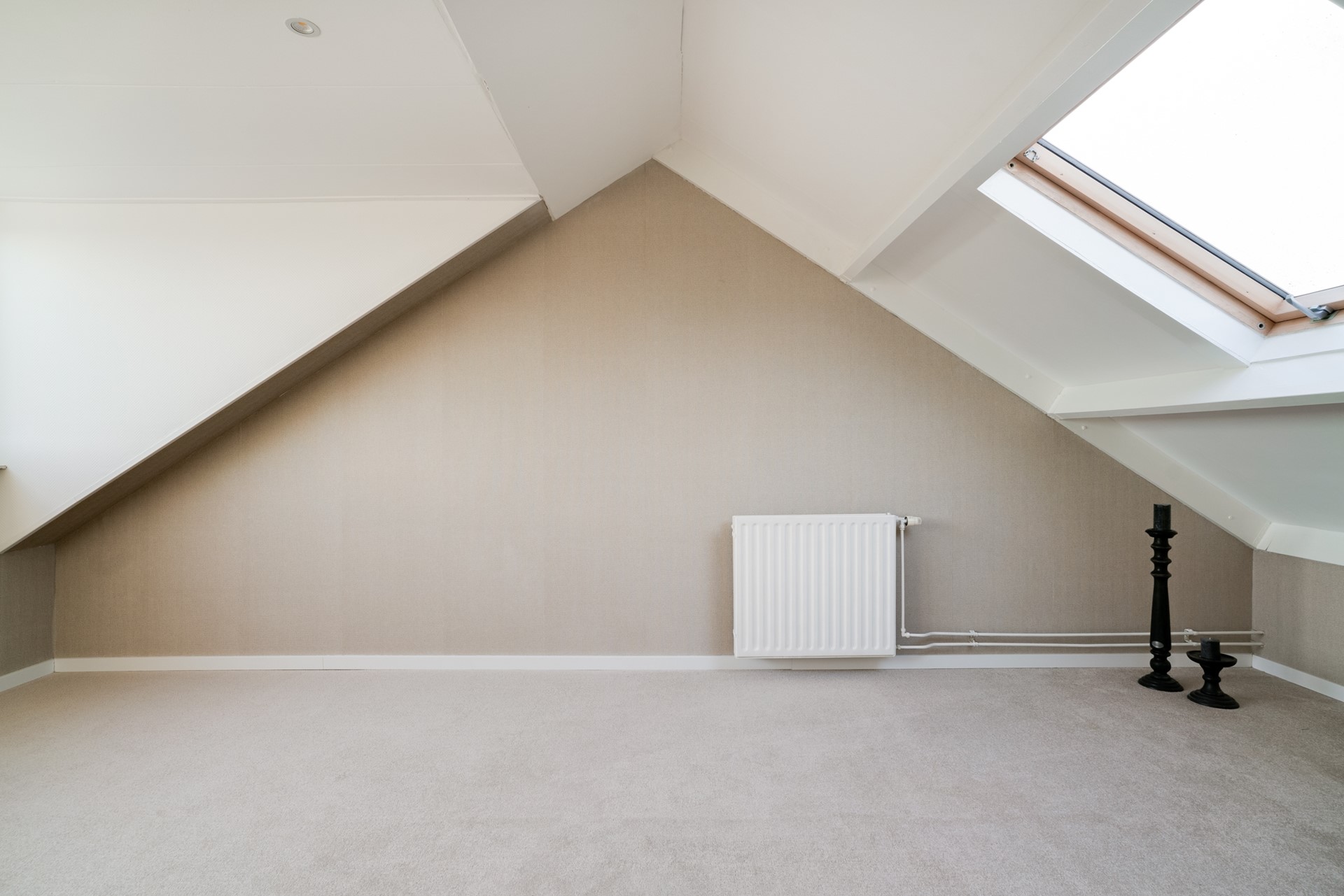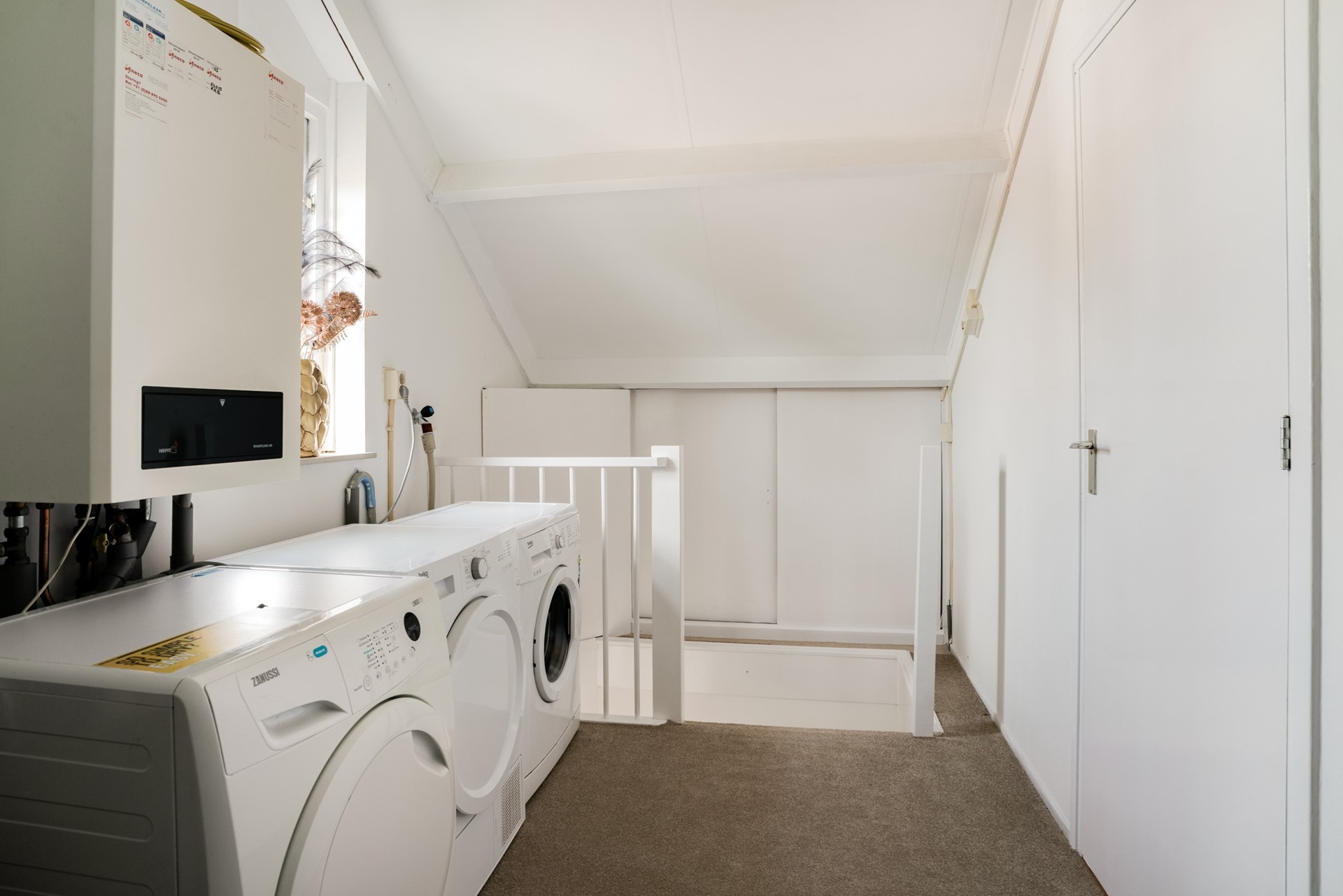 2E VERDIEPING: Voorzolder met cv-opstelling, wasmachine- en wasdroger aansluiting en royale 4e slaapkamer met Velux dakraam en dakkapel.