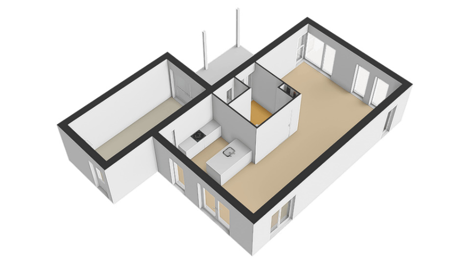 De woning wordt casco opgeleverd, dus zonder inbouwkeuken, toilet en badkamer. In de neergelegde vraagprijs is hiermee reeds rekening gehouden.