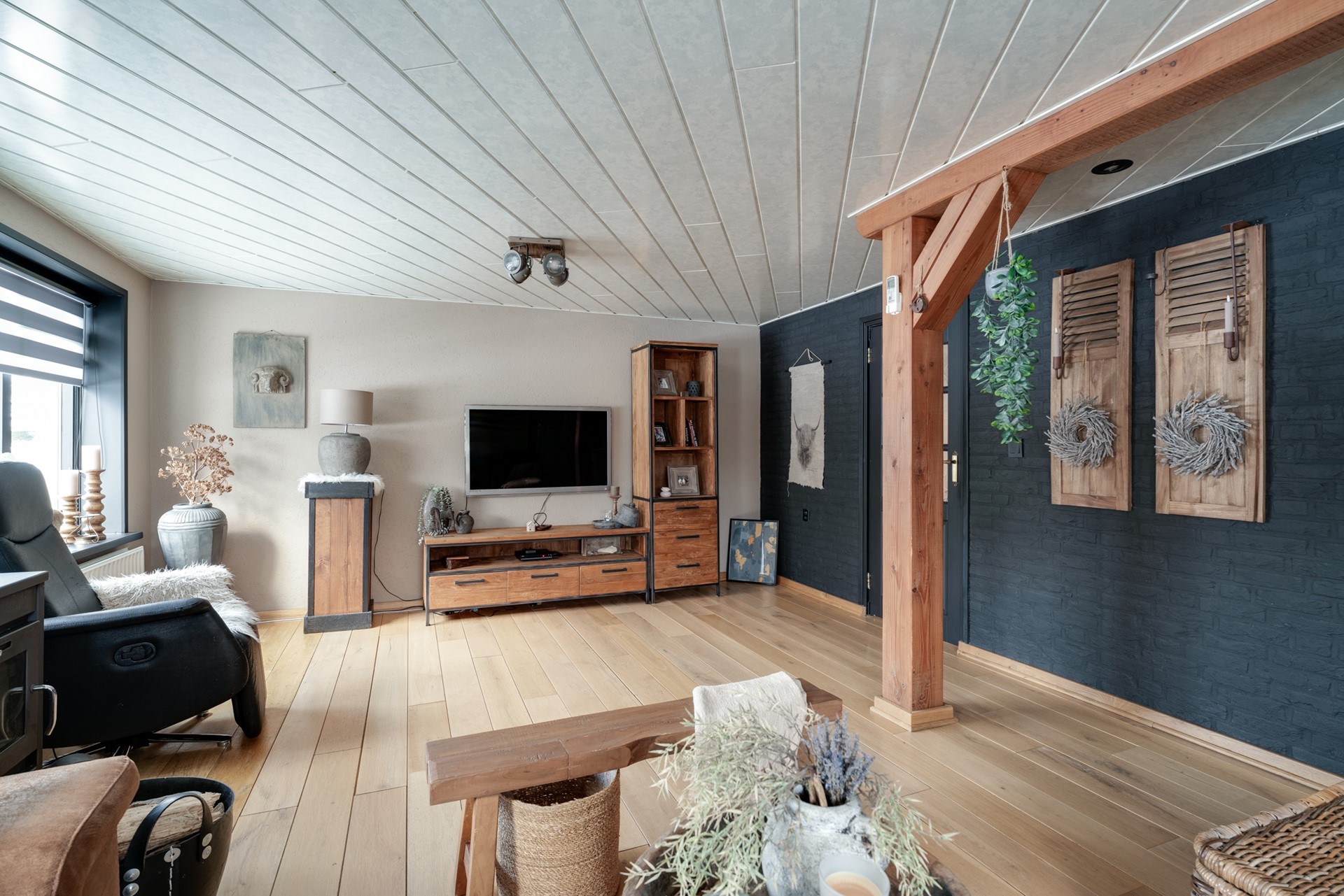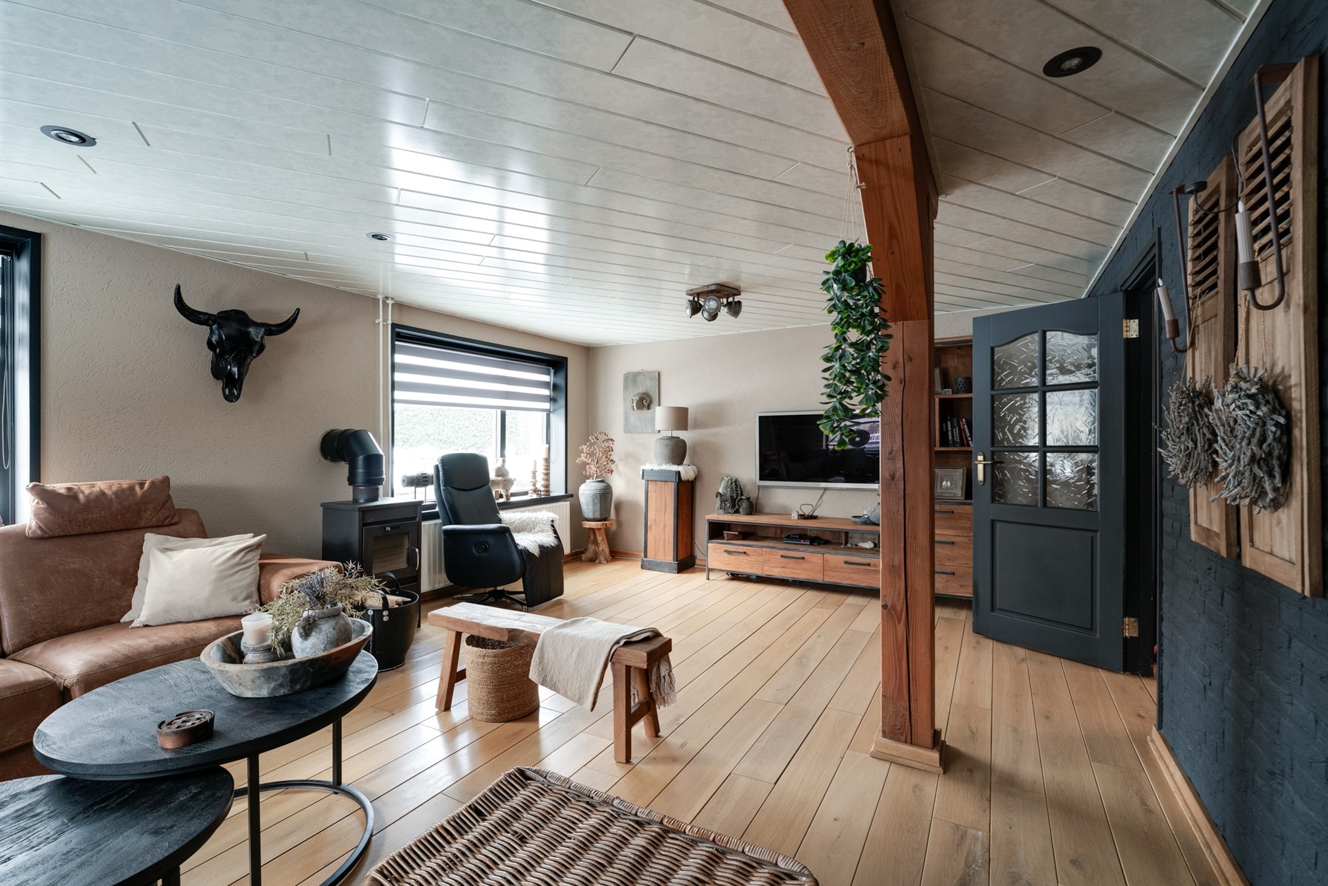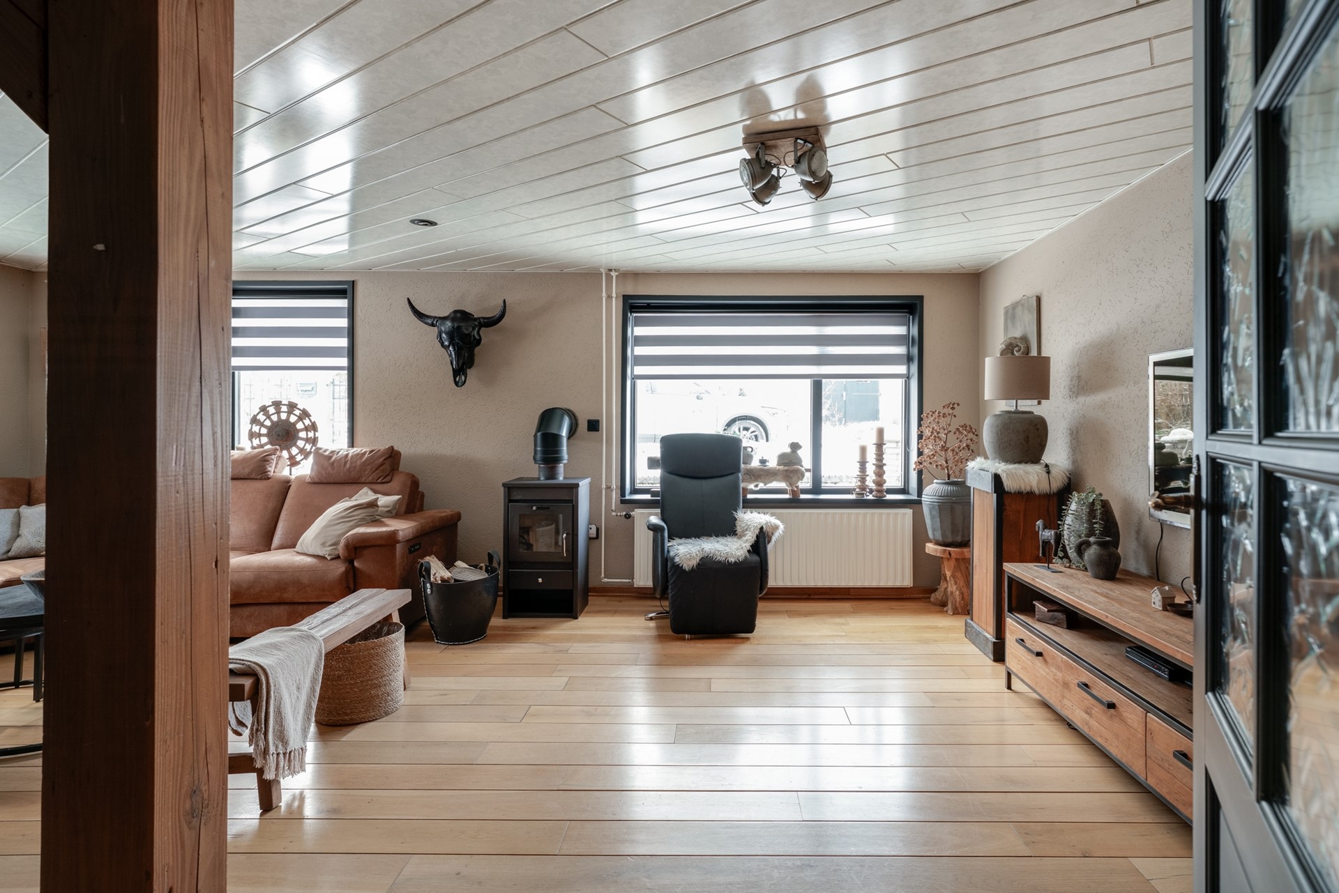 BEGANE GROND: Entree, hal met meterkast, trapopgang, ouderslaapkamer, tussenhal, toiletruimte voorzien van closet, urinoir en fontein, badkamer met wastafelmeubel, inloopdouche en ligbad voorbereiding, cv-ruimte, woon/eetkeuken voorzien van hoekopgestelde inbouwkeuken met afzuigkap, keramische kookplaat, elektrische oven, koelkast en vaatwasmachine voorbereiding, sfeervolle woonkamer met houtkachel en voorzien van airconditioning, achterportaal met toegang tot tuin.