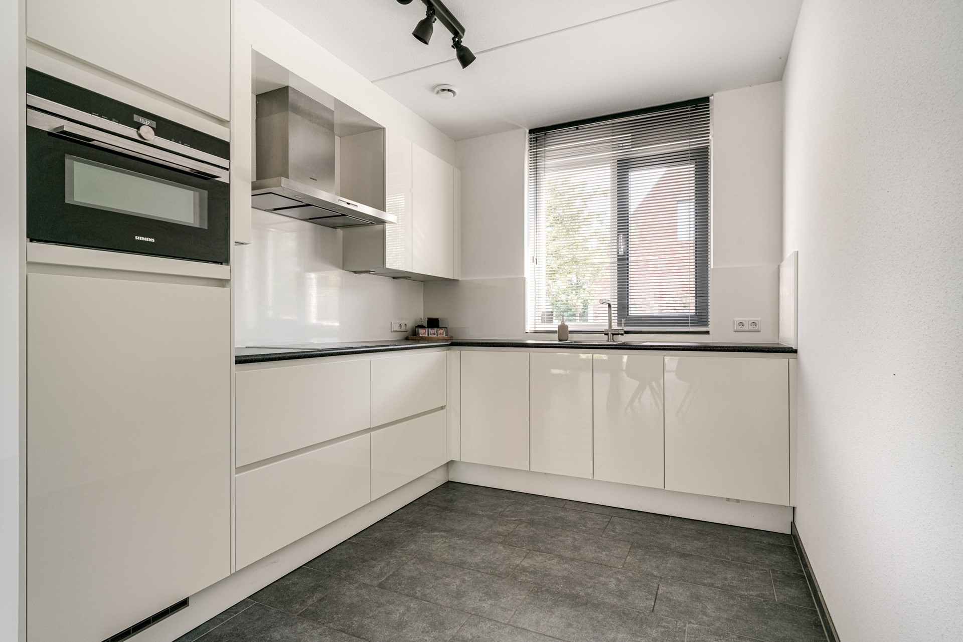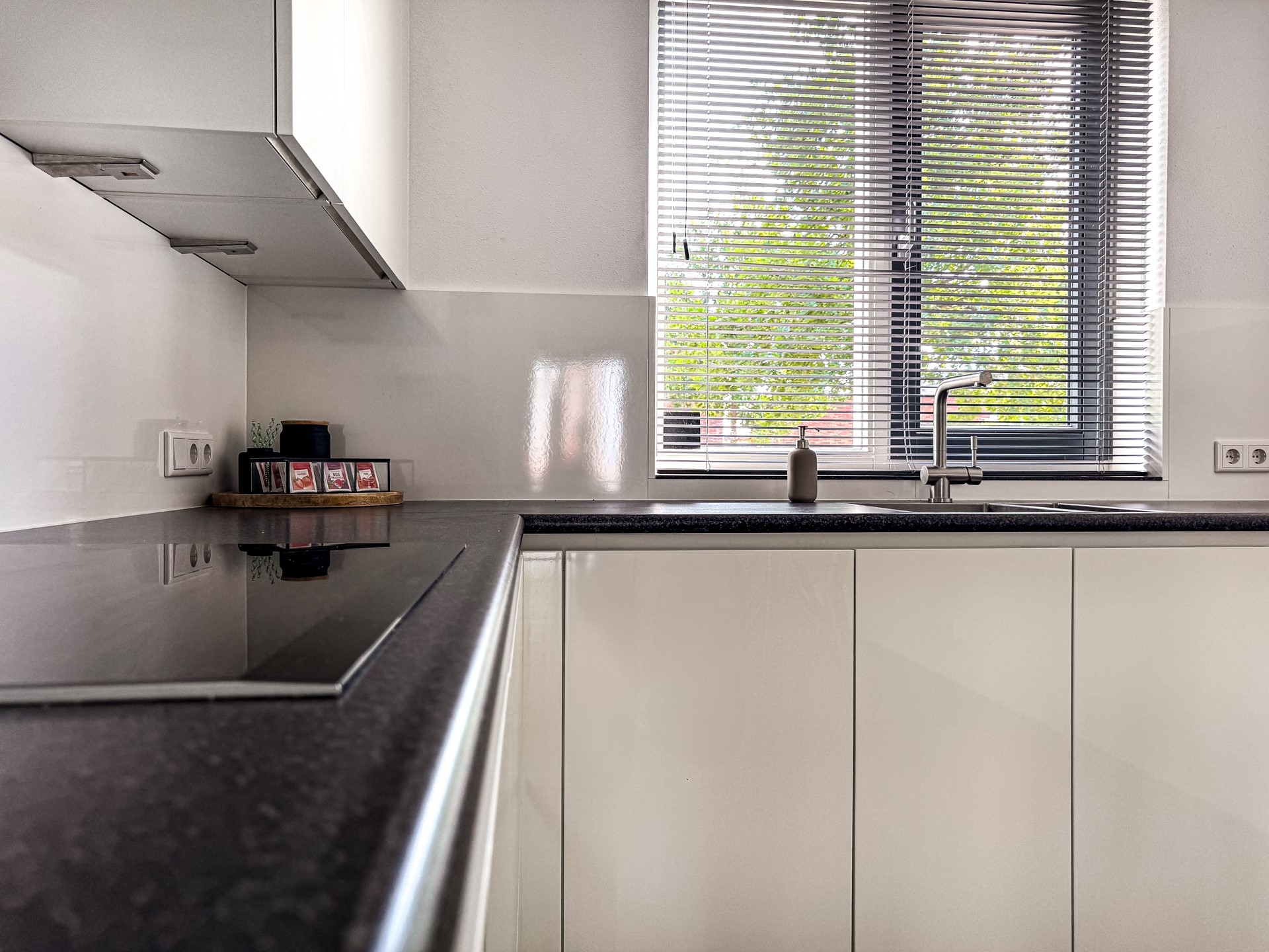 INDELING: BEGANE GROND: (geheel voorzien van tegelvloer met vloerverwarming) Entree, hal met trapopgang, toilet v.v. wandcloset met fontein, meterkast met stadsverwarmingsinstallatie, tuingerichte woonkamer met toegang tot zonneterras, trapkast met verdeler vloerverwarming, half open keuken voorzien van hoek opgestelde in hoogglanswit uitgevoerde inbouwkeuken voorzien van rvs afzuigkap, inductie kookplaat, combimagnetron en koelkast (vaatwasser voorbereid).