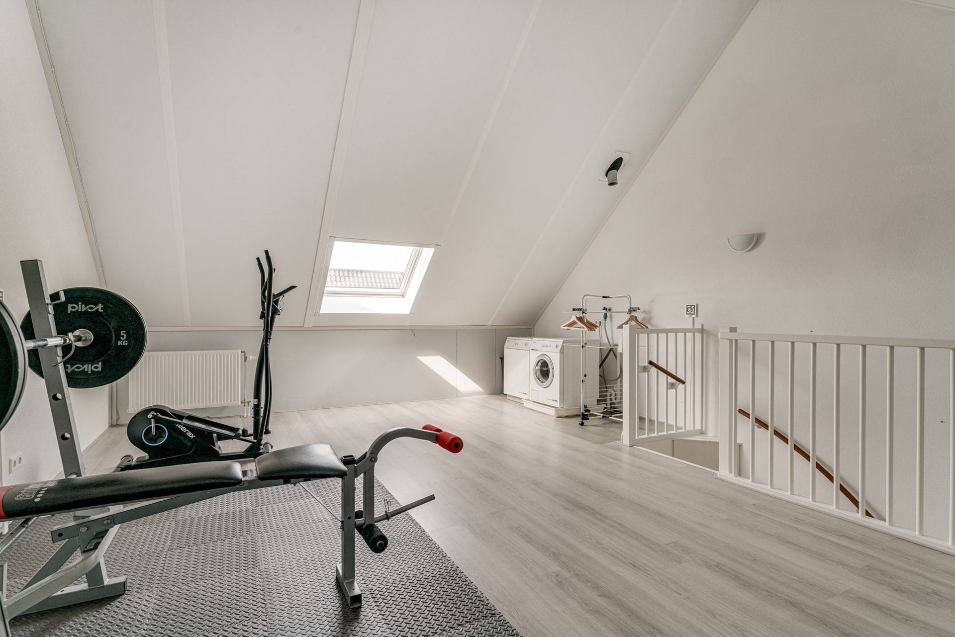 2E VERDIEPING: (geheel voorzien van laminaatvloer) Royale multifunctionele zolderkamer met groot Velux dakraam, prima geschikt als perfecte thuiswerkplek, opstelling wasmachine en wasdroger, desgewenst kan hier een eenvoudig een vierde slaapkamer worden gerealiseerd.
